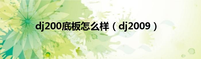 以上就是【dj200底板怎么样,dj2009】相关内容。