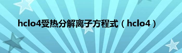 大家好,小问来为大家解答以上问题。hclo4受热分解离子方程式,hclo4这个很多人还不知道,现在让我们一起来看看吧!