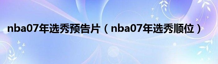 大家好,小问来为大家解答以上问题。nba07年选秀预告片,nba07年选秀顺位这个很多人还不知道,现在让我们一起来看看吧!