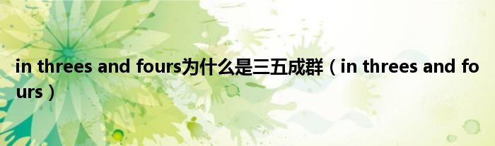 以上就是【in threes and fours为什么是三五成群,in threes and fours】相关内容。