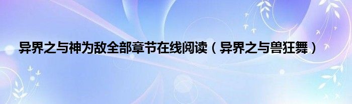 大家好,小问来为大家解答以上问题。异界之与神为敌全部章节在线阅读,异界之与兽狂舞这个很多人还不知道,现在让我们一起来看看吧!
