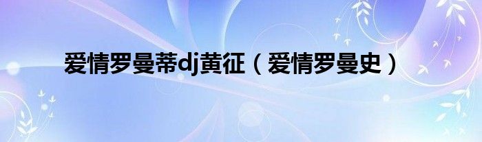 以上就是【爱情罗曼蒂dj黄征,爱情罗曼史】相关内容。