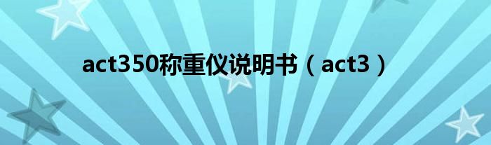 大家好,小问来为大家解答以上问题。act350称重仪说明书,act3这个很多人还不知道,现在让我们一起来看看吧!