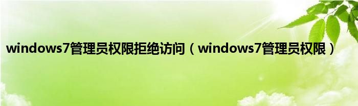 以上就是【windows7管理员权限拒绝访问,windows7管理员权限】相关内容。