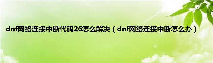 以上就是【dnf网络连接中断代码26怎么解决,dnf网络连接中断怎么办】相关内容。