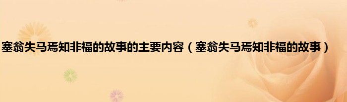 大家好,小问来为大家解答以上问题。塞翁失马焉知非福的故事的主要内容,塞翁失马焉知非福的故事这个很多人还不知道,现在让我们一起来看看吧!