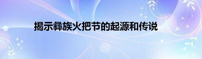 大家好,综合小编来为大家讲解下。揭示彝族火把节的起源和传说这个很多人还不知道,现在让我们一起来看看吧!