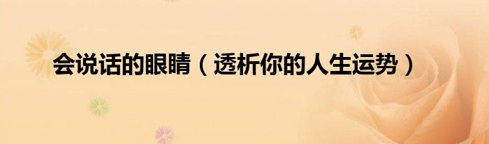大家好,综合小编来为大家讲解下。会说话的眼睛,透析你的人生运势这个很多人还不知道,现在让我们一起来看看吧!