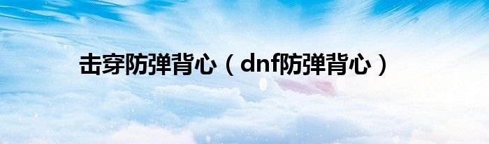 大家好,小问来为大家解答以上问题。击穿防弹背心,dnf防弹背心这个很多人还不知道,现在让我们一起来看看吧!