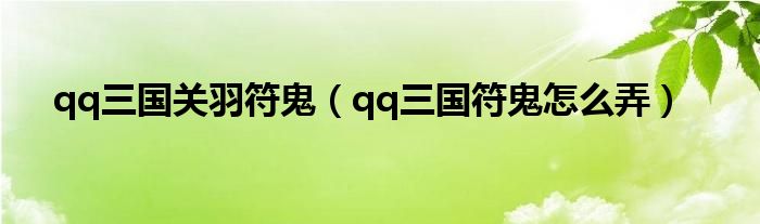 大家好,小问来为大家解答以上问题。qq三国关羽符鬼,qq三国符鬼怎么弄这个很多人还不知道,现在让我们一起来看看吧!