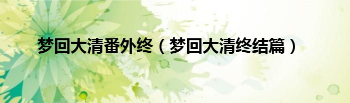 以上就是【梦回大清番外终,梦回大清终结篇】相关内容。