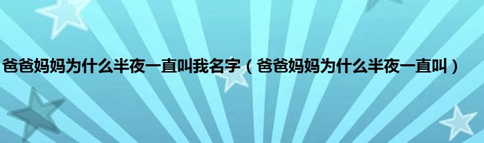 大家好,小问来为大家解答以上问题。爸爸妈妈为什么半夜一直叫我名字,爸爸妈妈为什么半夜一直叫这个很多人还不知道,现在让我们一起来看看吧!