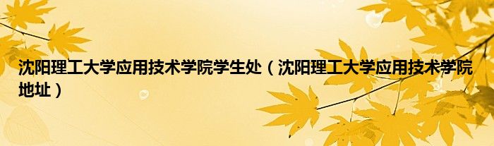 以上就是【沈阳理工大学应用技术学院学生处,沈阳理工大学应用技术学院地址】相关内容。