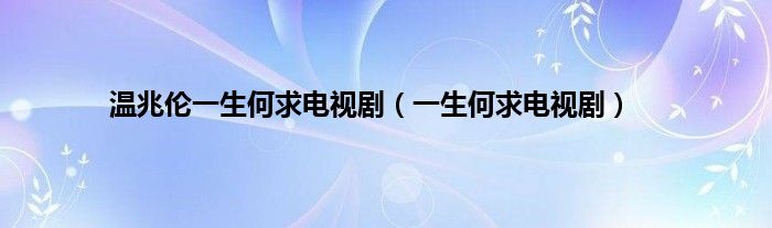 以上就是【温兆伦一生何求电视剧,一生何求电视剧】相关内容。