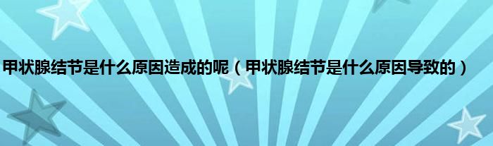 大家好,甲状腺结节是什么原因造成的呢,甲状腺结节是什么原因导致的很多人还不知道,现在让我们一起来看看吧!