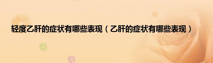 本文,轻度乙肝的症状有哪些表现,乙肝的症状有哪些表现到此就分享完毕,希望对大家有所帮助。