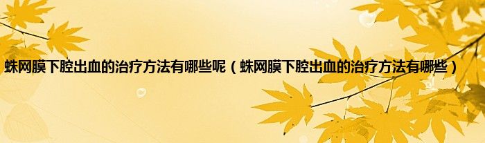 本文,蛛网膜下腔出血的治疗方法有哪些呢,蛛网膜下腔出血的治疗方法有哪些到此就分享完毕,希望对大家有所帮助。