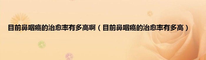 大家好,目前鼻咽癌的治愈率有多高啊,目前鼻咽癌的治愈率有多高很多人还不知道,现在让我们一起来看看吧!