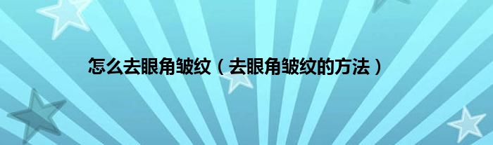 大家好,怎么去眼角皱纹,去眼角皱纹的方法很多人还不知道,现在让我们一起来看看吧!