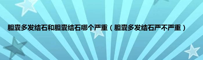 1、 多发性胆结石,疾病本身并不严重,但由于其并发症较多,而且有些并发症会比较急性严重,可能会危及生命,如急性胰腺炎、急性化脓性胆管炎等。