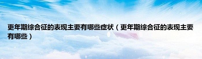 大家好,更年期综合征的表现主要有哪些症状,更年期综合征的表现主要有哪些很多人还不知道,现在让我们一起来看看吧!