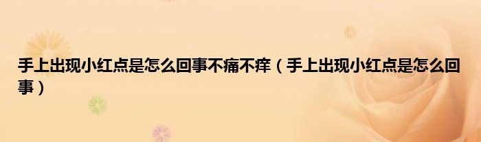 本文,手上出现小红点是怎么回事不痛不痒,手上出现小红点是怎么回事到此就分享完毕,希望对大家有所帮助。