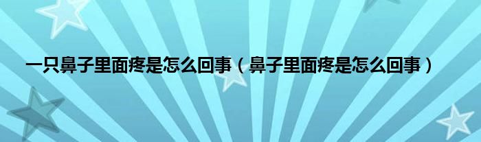 本文,一只鼻子里面疼是怎么回事,鼻子里面疼是怎么回事到此就分享完毕,希望对大家有所帮助。