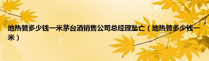 大家好,小问来为大家解答以上问题。地热管多少钱一米茅台酒销售公司总经理坠亡,地热管多少钱一米这个很多人还不知道,现在让我们一起来看看吧!