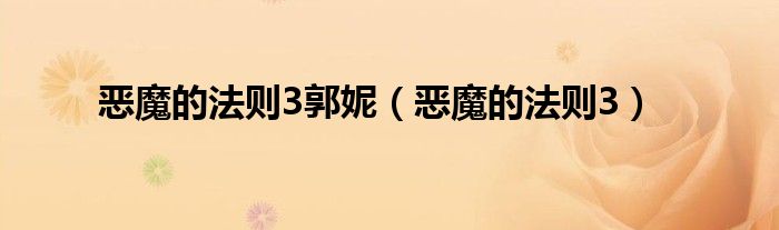 大家好,小问来为大家解答以上问题。恶魔的法则3郭妮,恶魔的法则3这个很多人还不知道,现在让我们一起来看看吧!