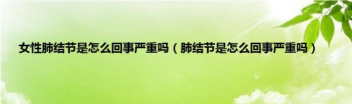 本文,女性肺结节是怎么回事严重吗,肺结节是怎么回事严重吗到此就分享完毕,希望对大家有所帮助。