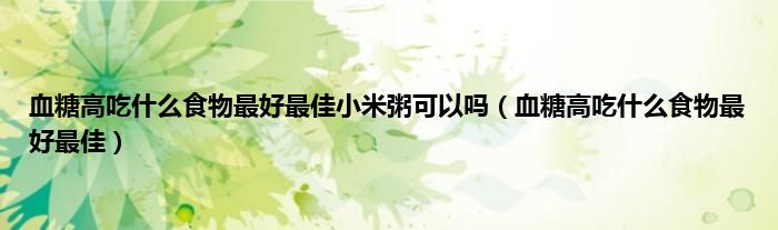 本文,血糖高吃什么食物最好最佳小米粥可以吗,血糖高吃什么食物最好最佳到此就分享完毕,希望对大家有所帮助。