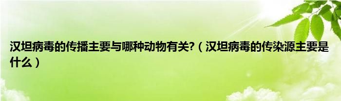 本文,汉坦病毒的传播主要与哪种动物有关?,汉坦病毒的传染源主要是什么到此就分享完毕,希望对大家有所帮助。