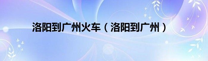 以上就是【洛阳到广州火车,洛阳到广州】相关内容。