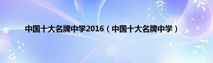 大家好,小问来为大家解答以上问题。中国十大名牌中学2016,中国十大名牌中学这个很多人还不知道,现在让我们一起来看看吧!