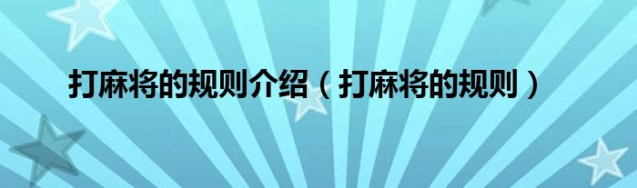 以上就是【打麻将的规则介绍,打麻将的规则】相关内容。
