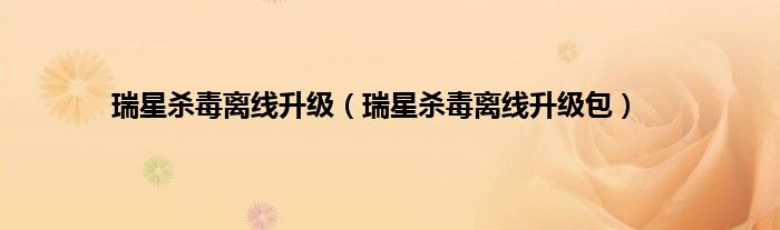 以上就是【瑞星杀毒离线升级,瑞星杀毒离线升级包】相关内容。