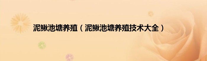 本文,泥鳅池塘养殖,泥鳅池塘养殖技术大全到此就分享完毕,希望对大家有所帮助。