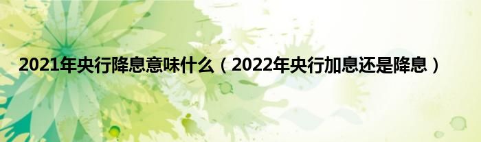 本文,2021年央行降息意味什么,2022年央行加息还是降息到此就分享完毕,希望对大家有所帮助。