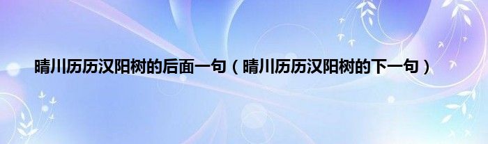 本文,晴川历历汉阳树的后面一句,晴川历历汉阳树的下一句到此就分享完毕,希望对大家有所帮助。