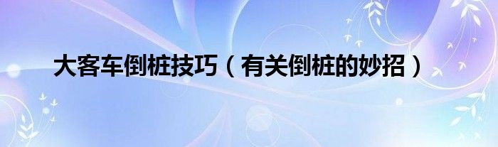 本文,大客车倒桩技巧,有关倒桩的妙招到此就分享完毕,希望对大家有所帮助。