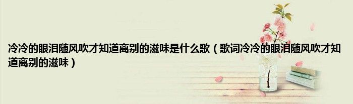 本文,冷冷的眼泪随风吹才知道离别的滋味是什么歌,歌词冷冷的眼泪随风吹才知道离别的滋味到此就分享完毕,希望对大家有所帮助。