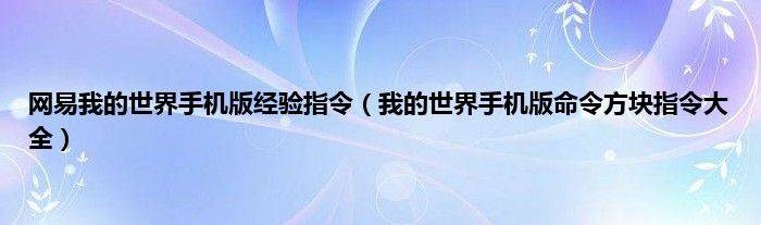 本文,网易我的世界手机版经验指令,我的世界手机版命令方块指令大全到此就分享完毕,希望对大家有所帮助。