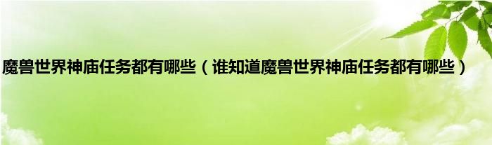 大家好,魔兽世界神庙任务都有哪些,谁知道魔兽世界神庙任务都有哪些很多人还不知道,现在让我们一起来看看吧!