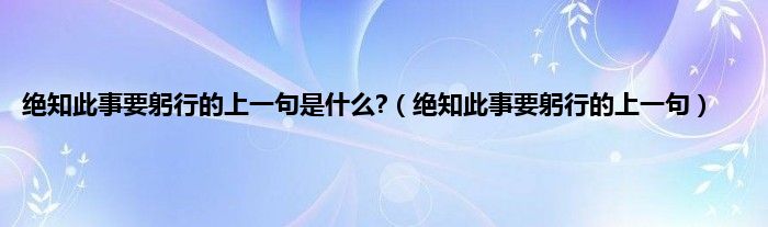 大家好,绝知此事要躬行的上一句是什么?,绝知此事要躬行的上一句很多人还不知道,现在让我们一起来看看吧!