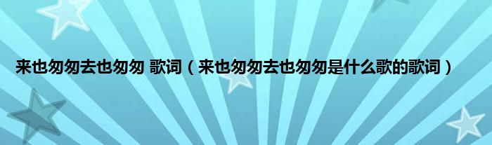 大家好,来也匆匆去也匆匆 歌词,来也匆匆去也匆匆是什么歌的歌词很多人还不知道,现在让我们一起来看看吧!