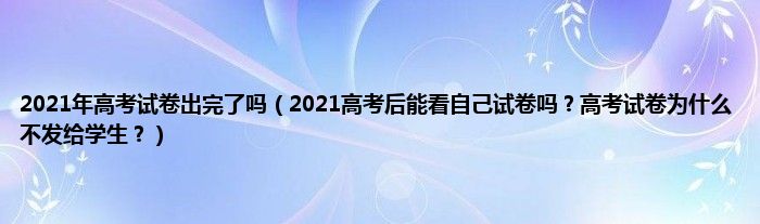 大家好,2021年高考试卷出完了吗,2021高考后能看自己试卷吗?高考试卷为什么不发给学生?很多人还不知道,现在让我们一起来看看吧!