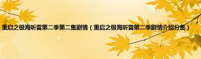 本文,重启之极海听雷第二季第二集剧情,重启之极海听雷第二季剧情介绍分集到此就分享完毕,希望对大家有所帮助。