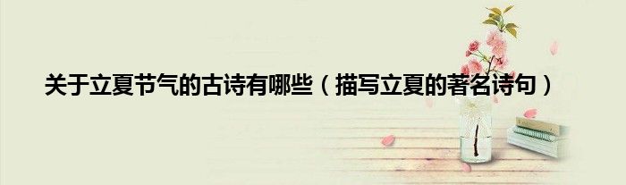 本文,关于立夏节气的古诗有哪些,描写立夏的著名诗句到此就分享完毕,希望对大家有所帮助。